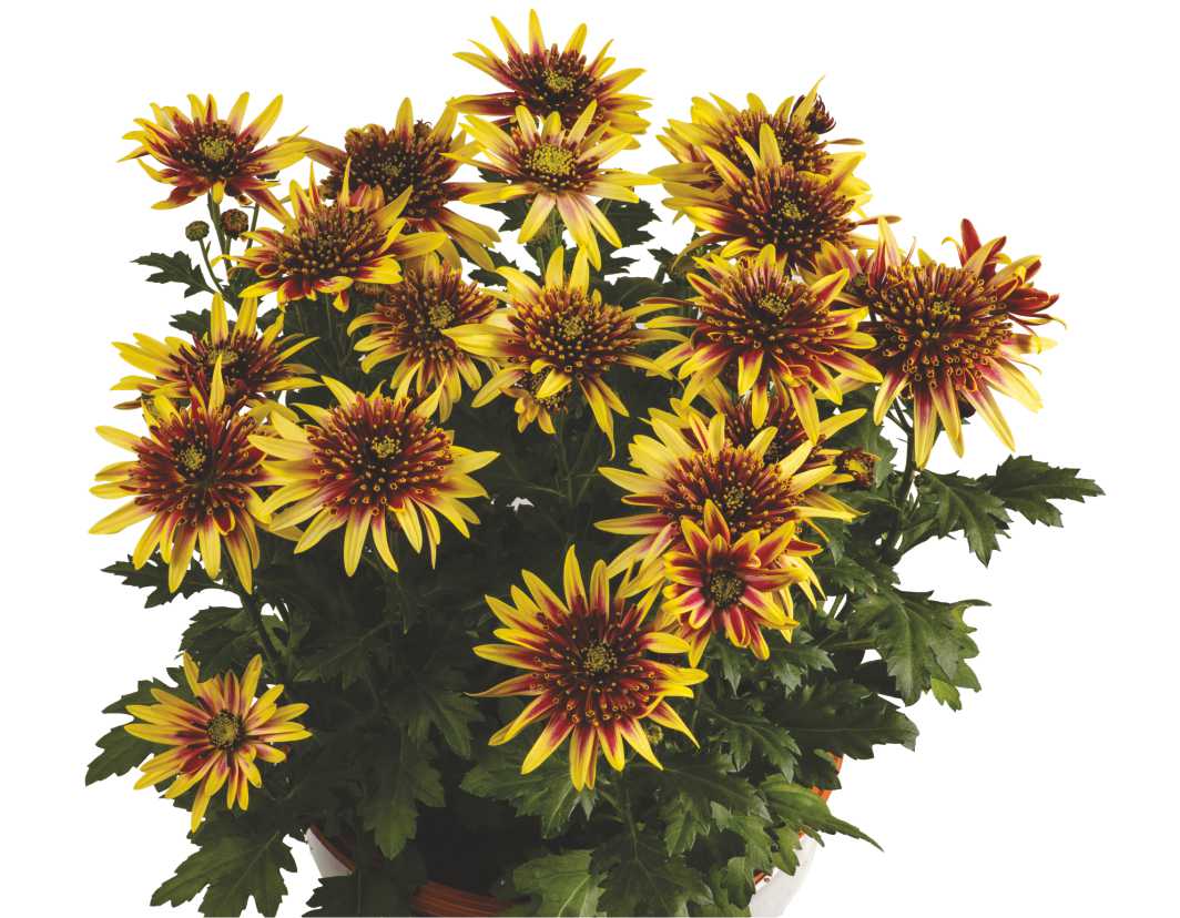 Reakcja fotoperiodyczna - 7Kolor - czerwono-żółtySiła wzrostu - 3forma kwiatostanu - dekoracyjnaHodowca - Royal Van Zante -