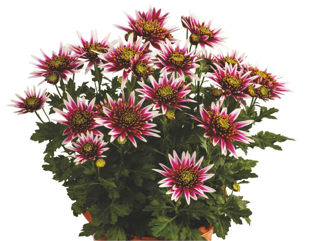 Reakcja fotoperiodyczna - 7Kolor - różowo-białySiła wzrostu - 3forma kwiatostanu - dekoracyjnaHodowca - Royal Van Zante -